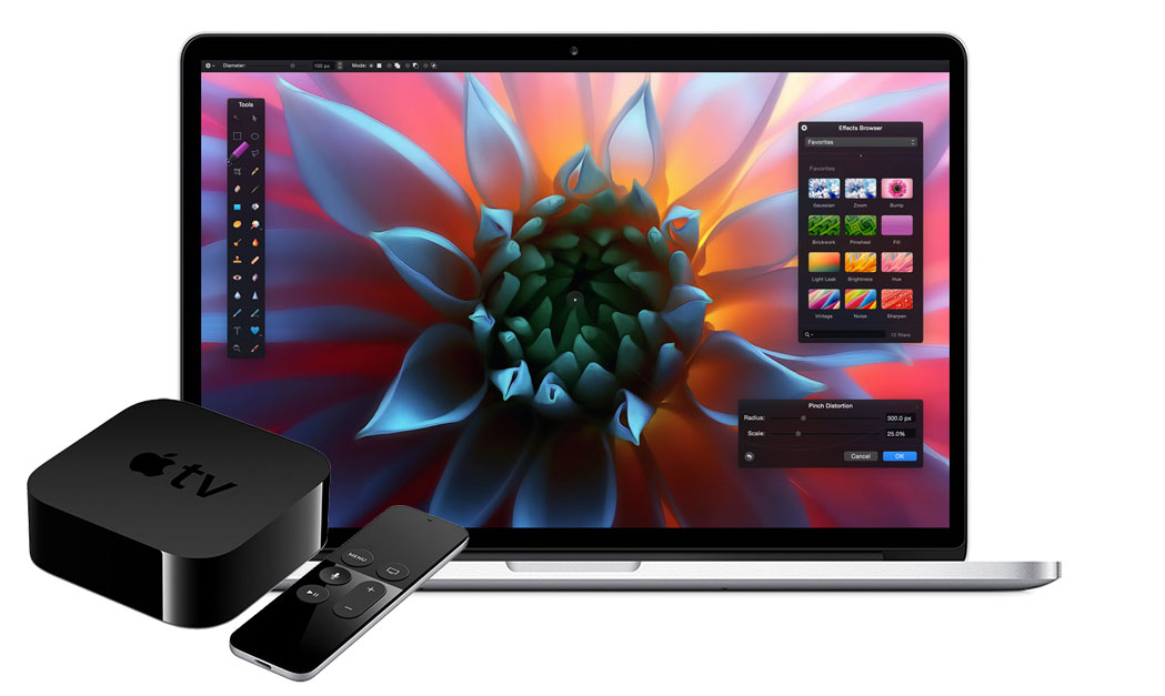 Dengan hadirnya iPhone dan iPad, banyak inovasi besar dan teknologi terbaru yang fokus pada layar kecil yang muat dalam saku atau genggaman kita. Namun ini saatnya TV layar lebar kami memperkenalkan teknologi tersebut dan dapatkan pengalaman inovatif yang setara. Dengan Apple TV dan tvOS baru, antarmuka yang didesain ulang, dan Apple TV Remote dengan permukaan Sentuh, pengalaman menonton TV tidak pernah seseru ini.