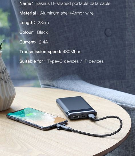 Baseus U-Shaped Portable Data Cable Type-C + Lightning Original