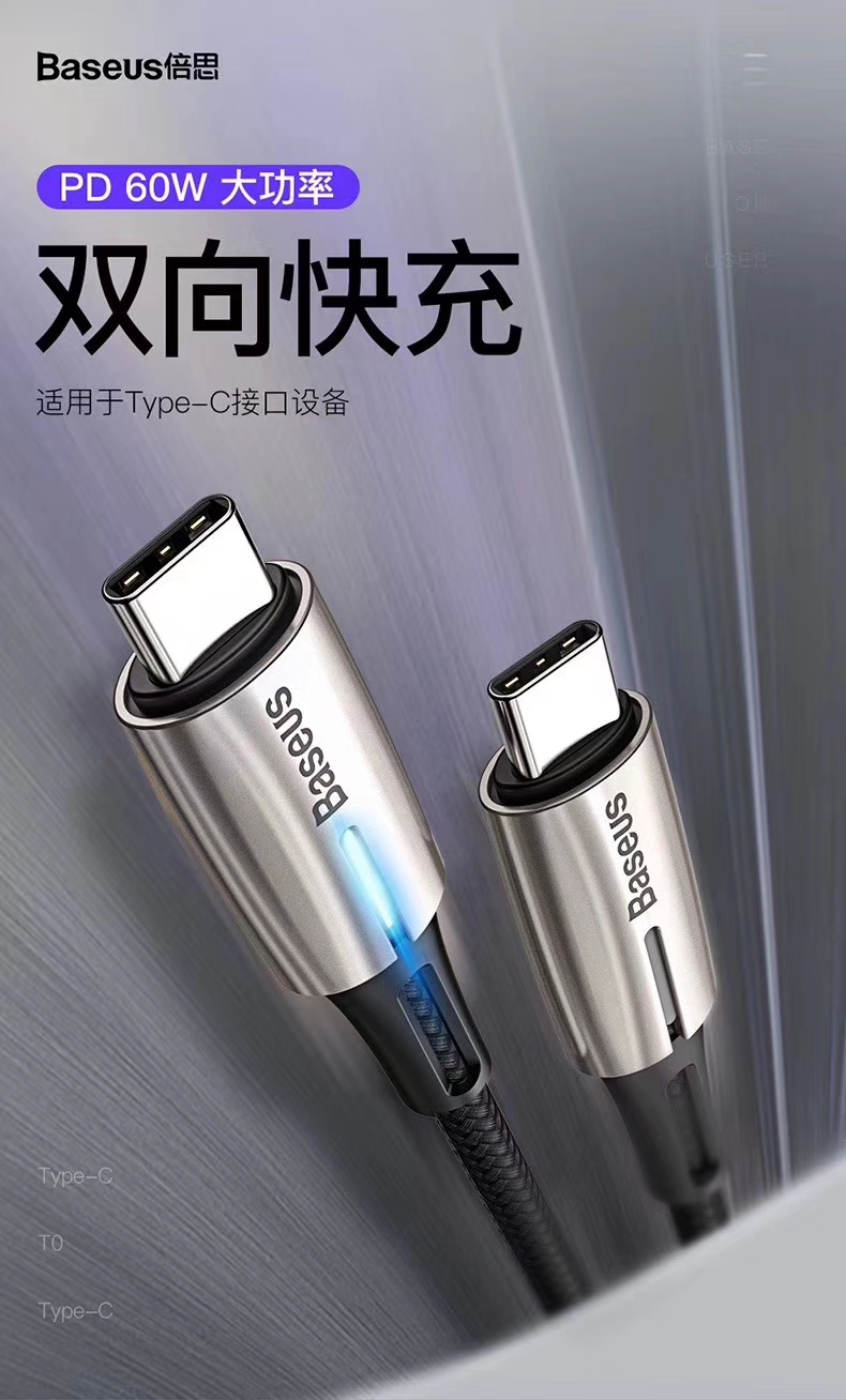 Baseus Water Drop-Shaped Lamp Cable Type-C to Type-C PD 60W 1M Original
