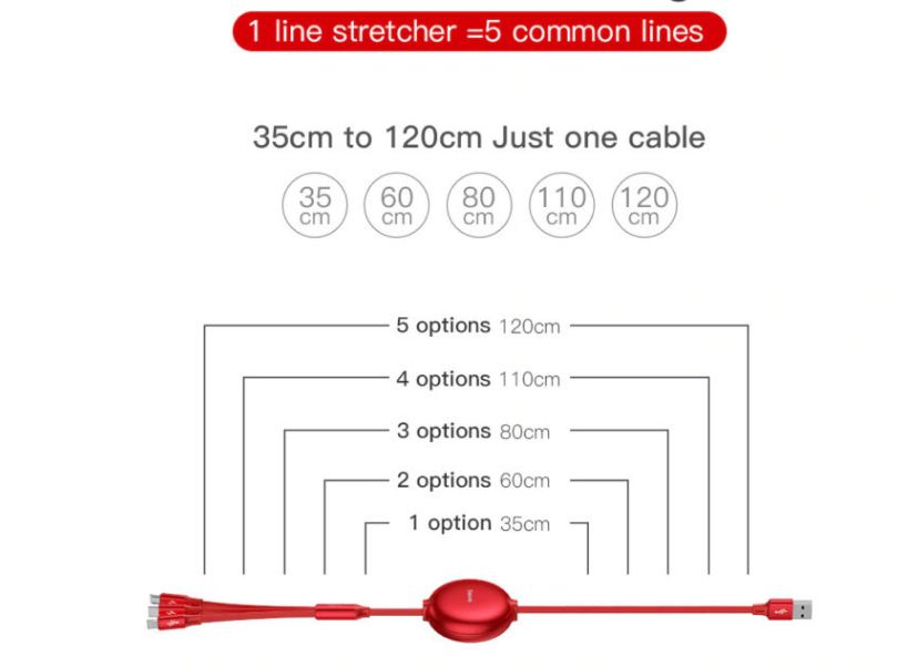 Name : Baseus Little Octopus Cable 3-in-1USB For M+L+T 3.5 A 1.2 meter
