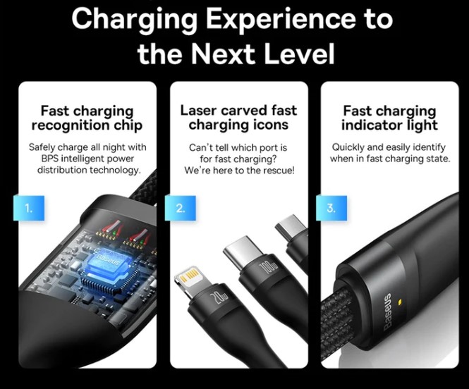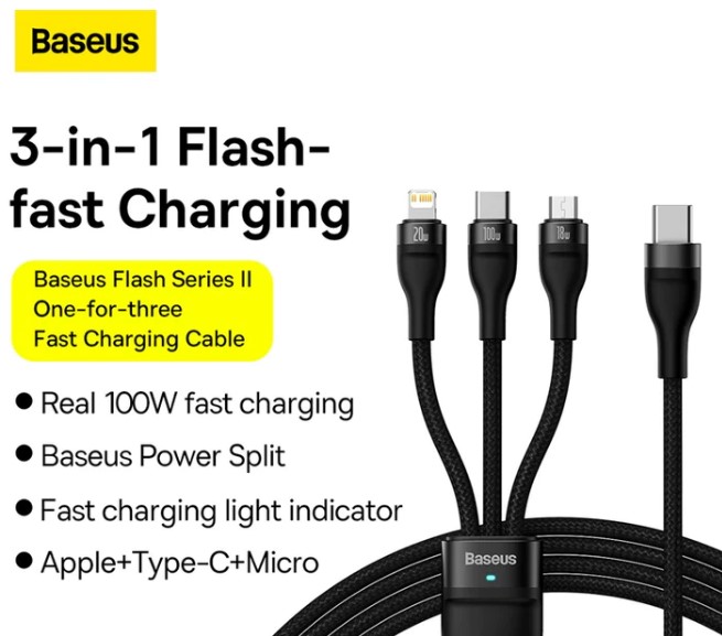 Baseus One-For-Three Fast Charging Cable Type-C to M+L+C 100W