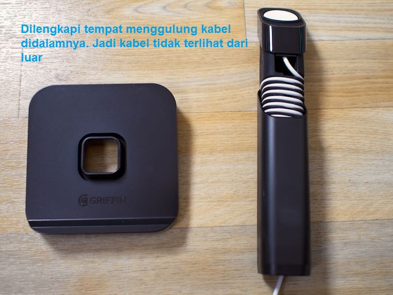 WatchStand brings an end to charge cord kinks and tangles. Wind excess cable length around WatchStand’s core then slide it down into the post to hide the unneeded cord.