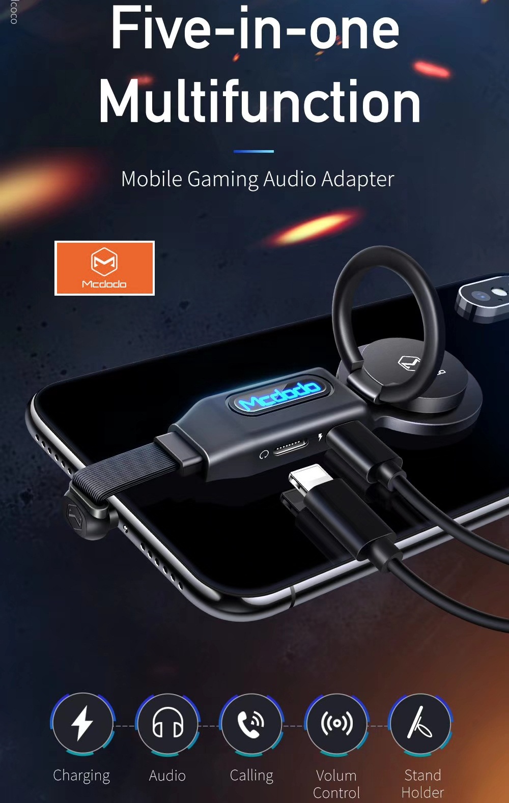 Mcdodo 4-in-1 Audio Adapter Ring Bracket Dual Lightning CA-6290 Original