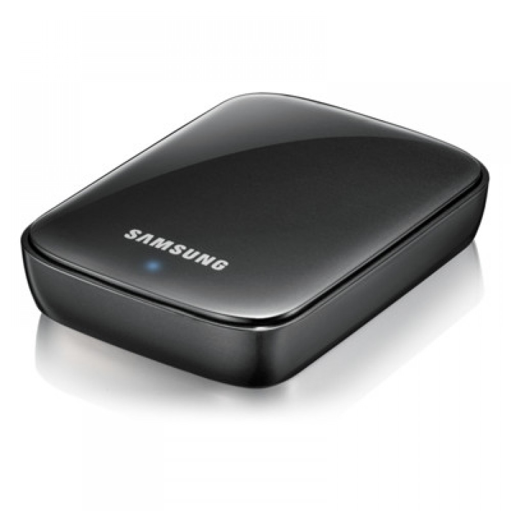The Samsung Wi-Fi All-Share Cast Hub is a compact and portable Wi-Fi Display receiver. It mirrors your phone screen on an HDTV and works with any Wi-Fi display capable device. The interface has a Wi-Fi Display (In) and an HDMI A type (Out). It can be used for entertainment like movies, pictures, music, and games. You can even use it for presentations in conference rooms or for in an education setting for classroom lectures or assignments. The Wi-Fi All-Share Cast Hub allows for quick and easy pairing with your phone and you can control content and perform actions from your phone. It's compatible with any Wi-Fi display capable device.