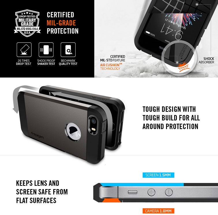When the going gets tough on your phone, give it the protection it deserves. Our Tough Armor® case for the iPhone 6s offers MIL-STD 810G 516.6 level security with Air Cushion Technology® for protection against drops. On top of it all, the Tough Armor® case gives your phone extra style.