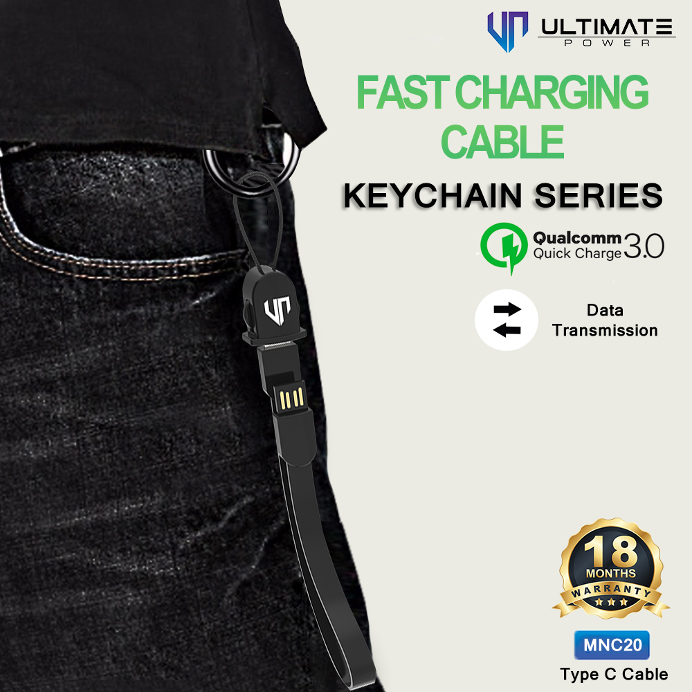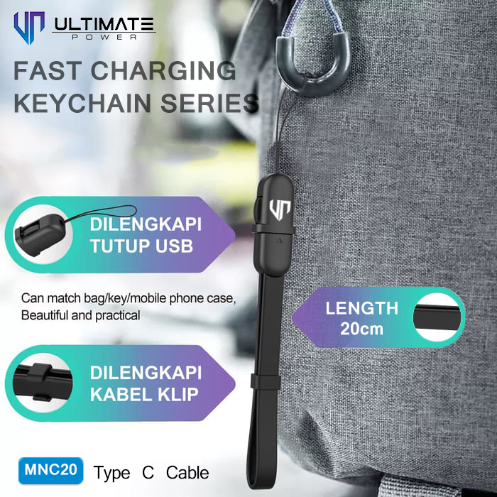 Ultimate Power Data and Charging Cable Keychain Series 20CM ini terbuat dari material kabel yang kuat dan tahan lama, juga support fast charging. Nyaman digunakan baik untuk powerbank maupun charger.