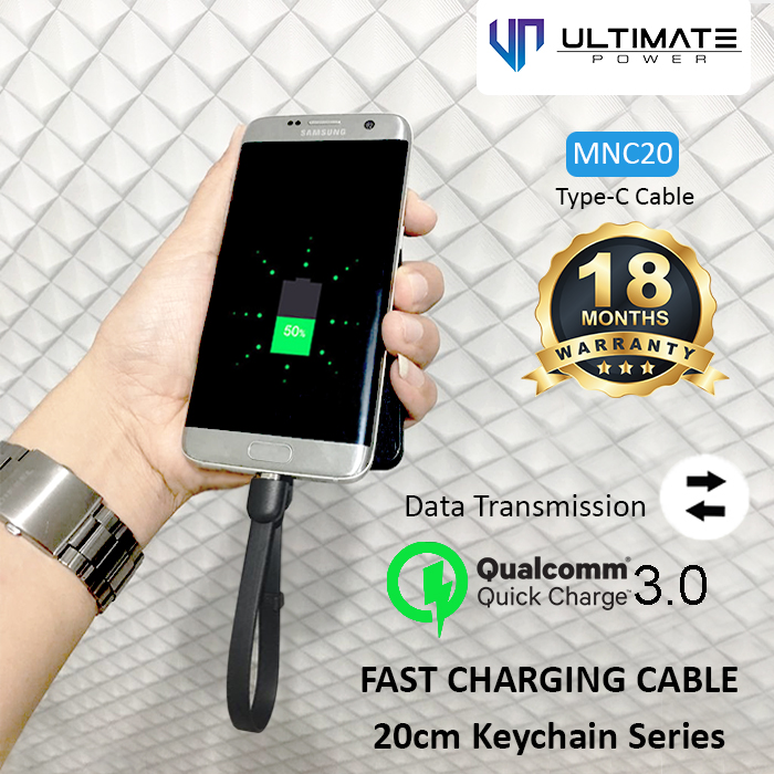 Ultimate Power Data and Charging Cable Keychain Series 20CM ini support fitur Fast Charging QC 3.0. Sangat cepat untuk mencharging smartphone yang telah mendukung fitur QC 3.0 juga.