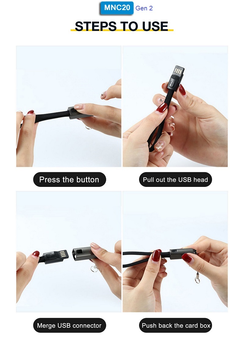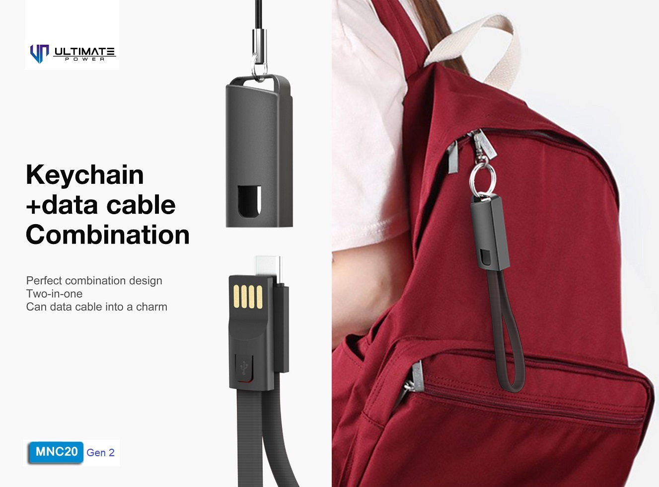 Ultimate Power Data and Charging Cable Keychain Series 20CM Gen2 ini sangat mudah dibawa karena fungsinya bisa sekaligus sebagai gantungan baik di kunci, tas, dll. Panjang produk ini hanya 20cm, sangat cocok untuk penggunaan powerbank, sehingga praktis dan tidak terganggu dengan kabel yang terlalu menjuntai panjang.