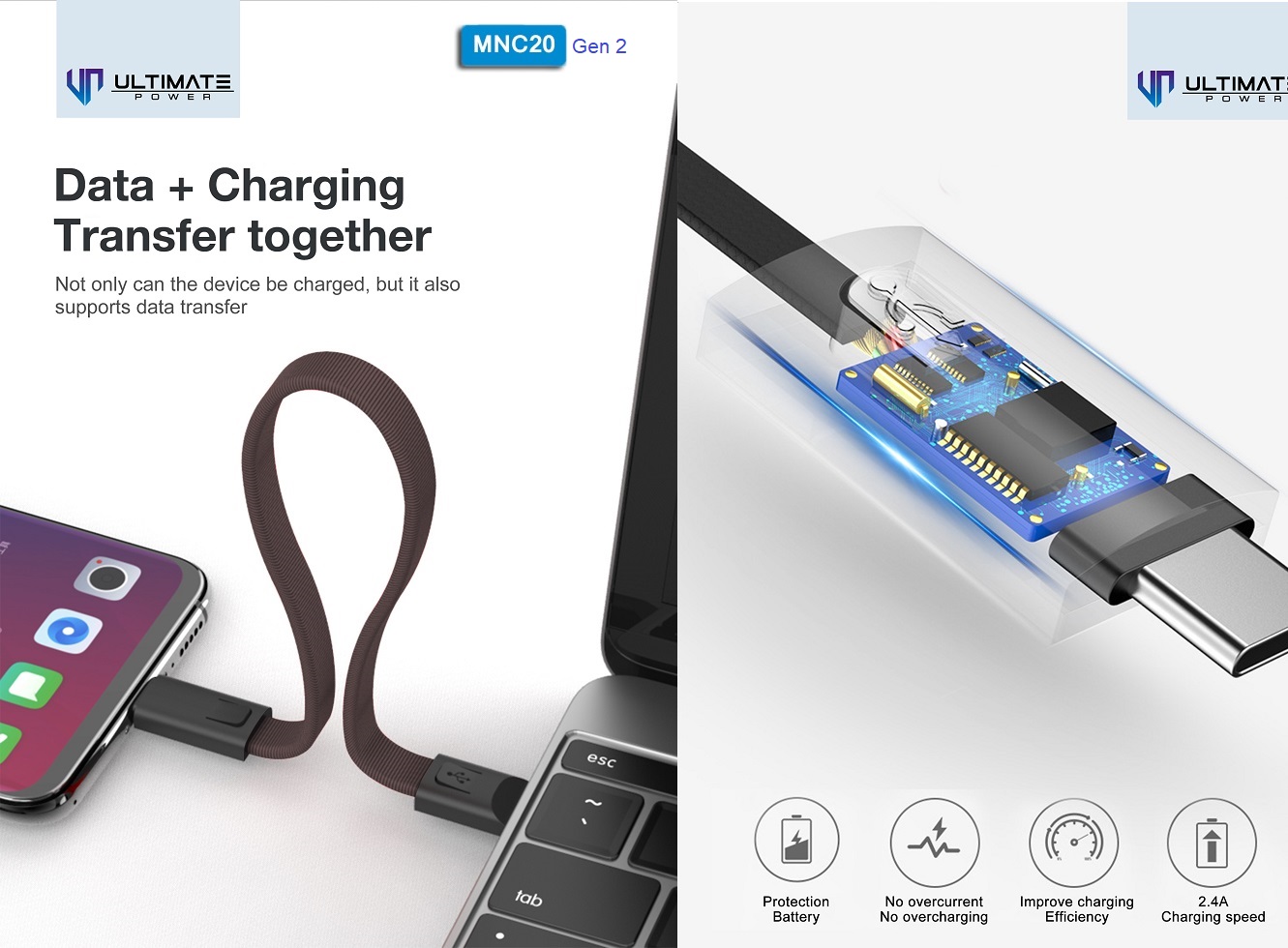 Ultimate Power Data and Charging Cable Keychain Series 20CM Gen2 ini terbuat dari material kabel yang kuat dan tahan lama, juga support fast charging. Nyaman digunakan baik untuk powerbank maupun charger.
