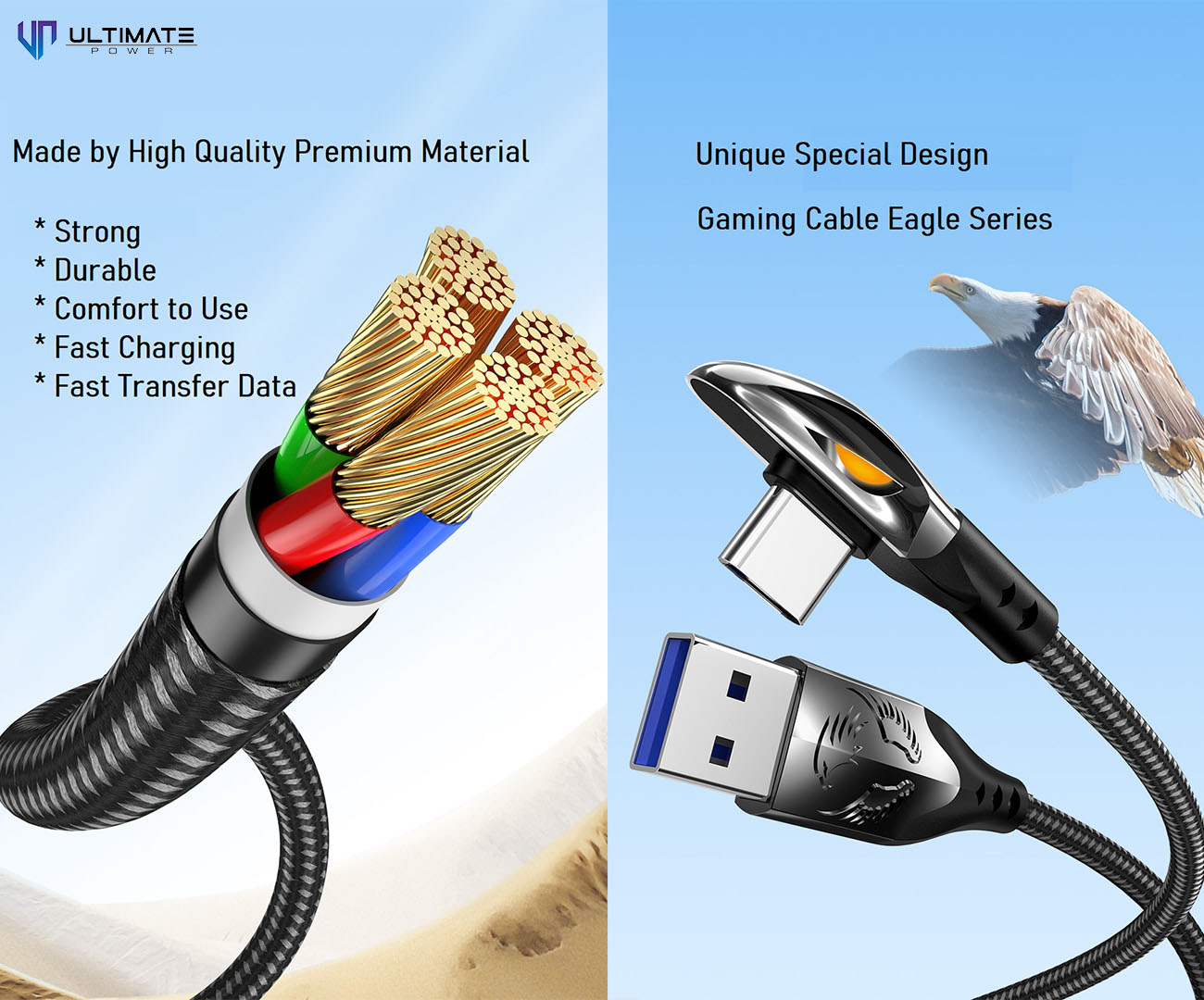 Ultimate Power Data Cable Gaming USB-A to Type-C 2M 66W Fast Charging
