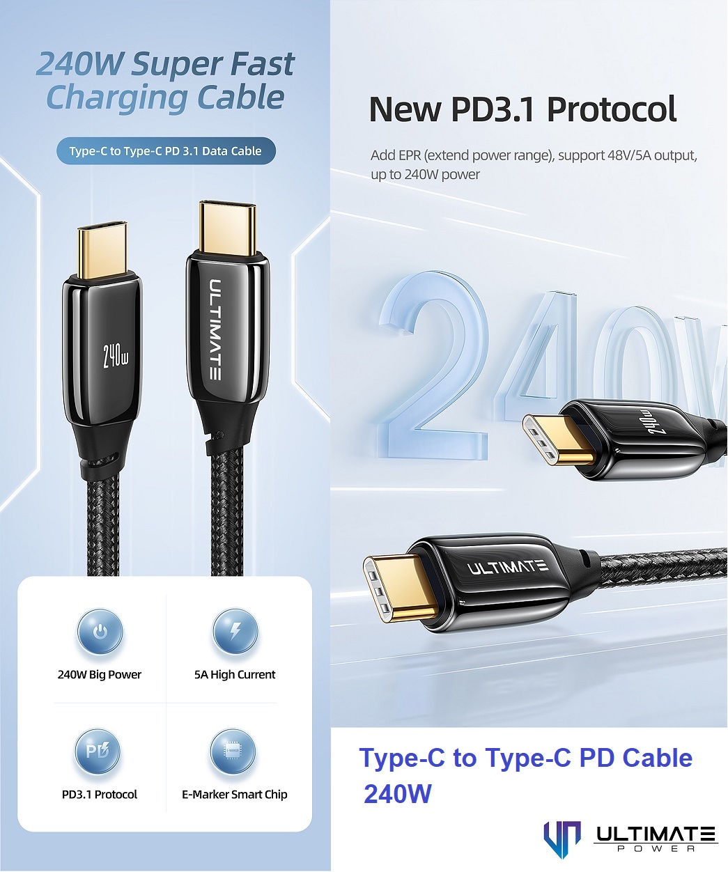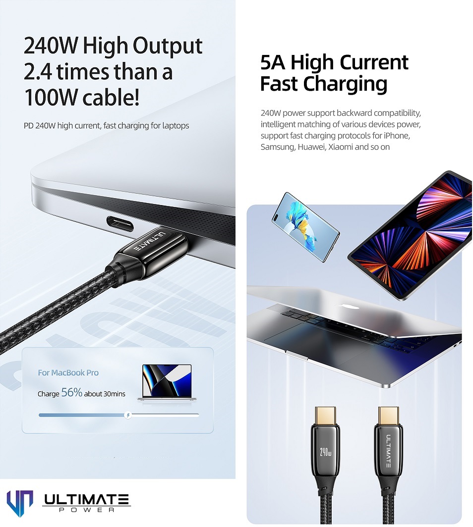 Ultimate Power Kabel Data Cable PD 240W Type-C to Type C USB-C Super Fast Charging