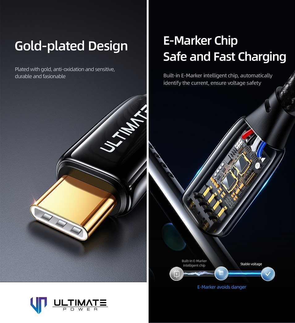 Ultimate PD 3.1 240W Type-C to Type-C Cable ini memiliki special chip dari E-marker yang membuatnya mampu mendeteksi kebutuhan daya setiap perangkat yang anda charging sehingga dapat mengalirkan arus daya yang tepat sesuai kebutuhan setiap perangkat.