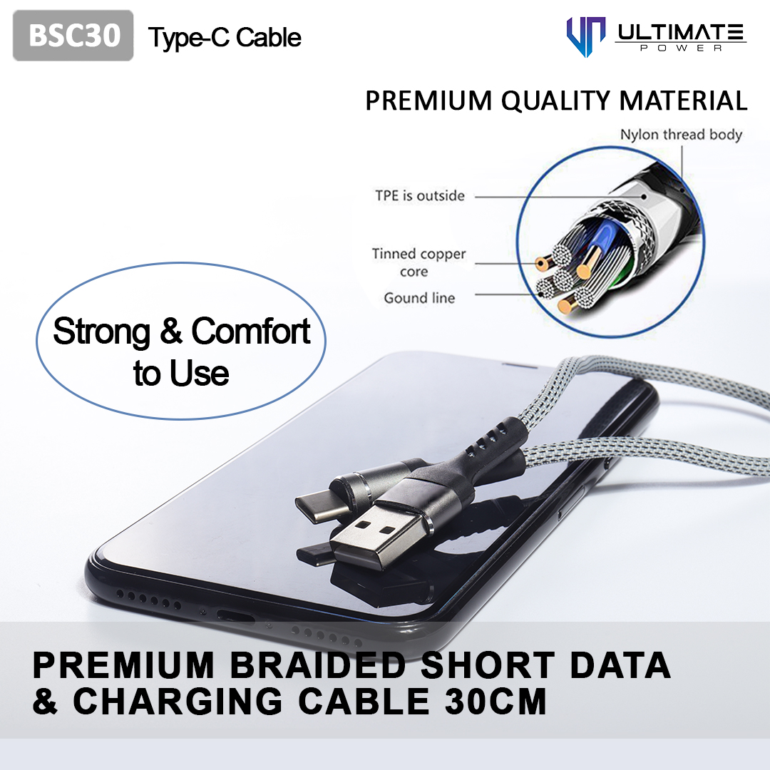 Ultimate Power Premium Braided Kabel Data and Charging Cable 30CM Type C