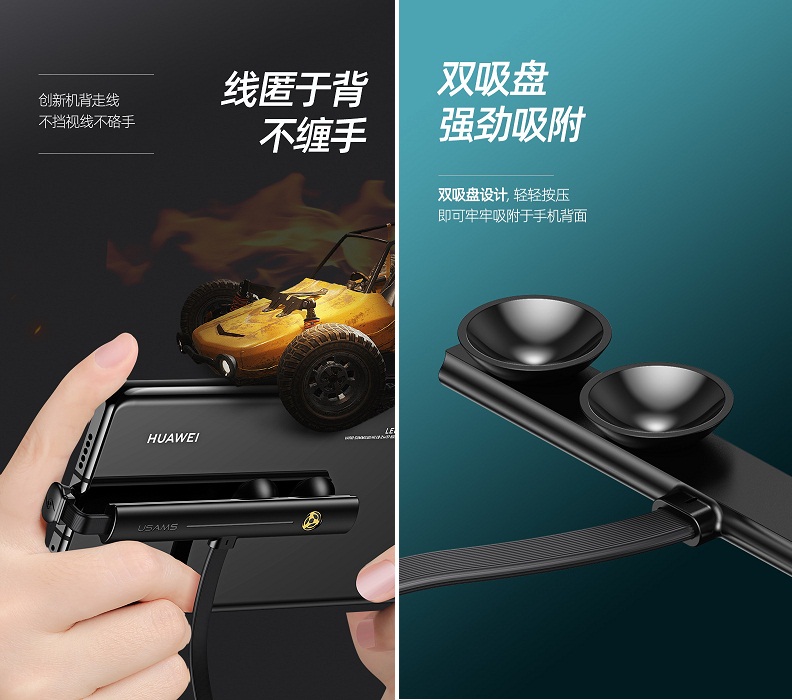 Usams Sucker Mibile Games Charging cable adalah sebuat Cable yang sangat cocok digunakan untuk Anda yang hobby main game di smartphone. Produk ini sangat pas menempel di smartphone, jadi tidak mengganggu aktivitas kita.
