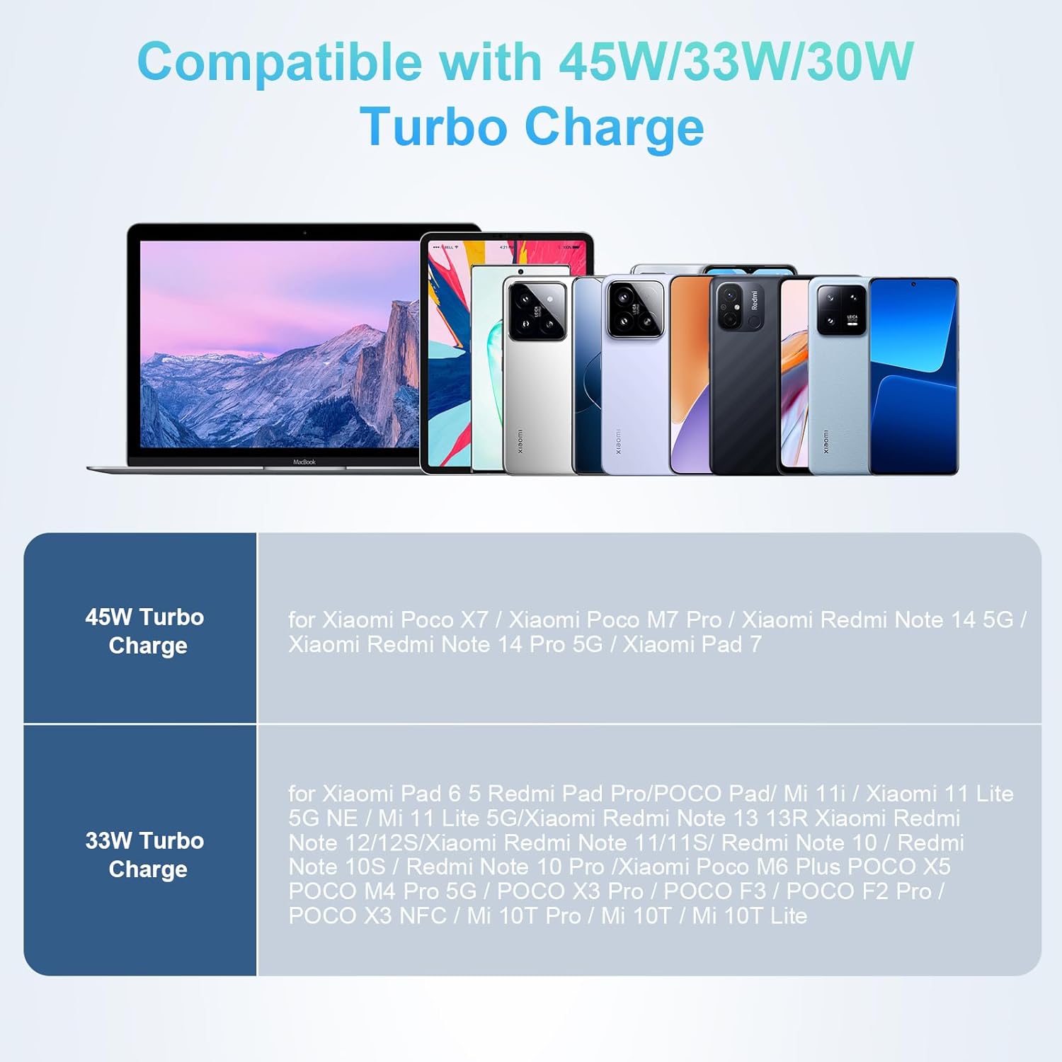 Saat ini, hanya Xiaomi Poco M7 Pro 5G, Poco X7, Redmi Note 14 5G, Redmi Note 14 Pro 5G, Mi Pad 7 yang sudah bisa 45W.