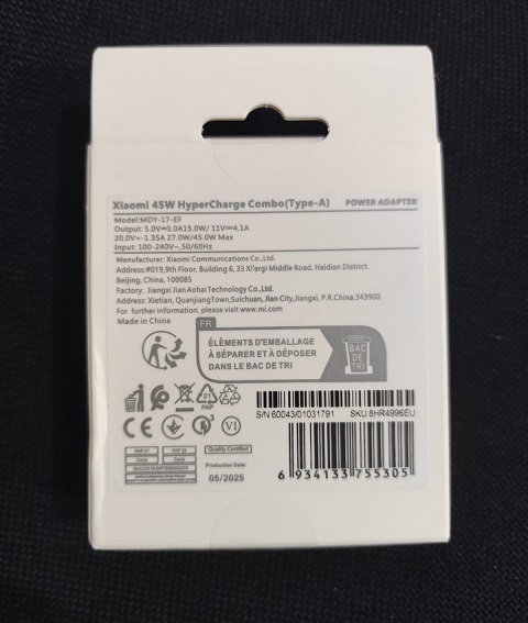 XIAOMI Charger 45W Charging Combo + Type-A Cable Turbo Original