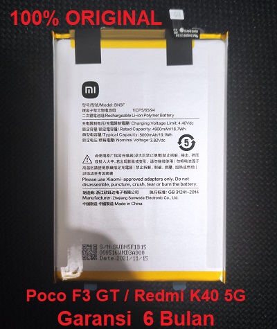 XIAOMI Battery Redmi K40 5G Poco F3 GT BN5F Original