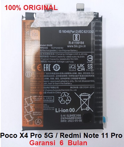 XIAOMI Battery Redmi Note 11 Pro Poco X4 Pro 5G BN5E Original