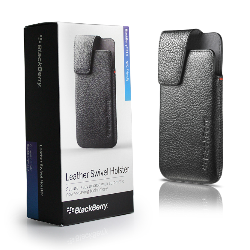 The BlackBerry Leather Holster is hand-crafted in genuine leather and has a soft inner lining for added protection. It also integrates power saving technology to help extend battery life. A durable 360 degree rotating belt clip and secure magnetic flap closure allows for personal wearing preference.