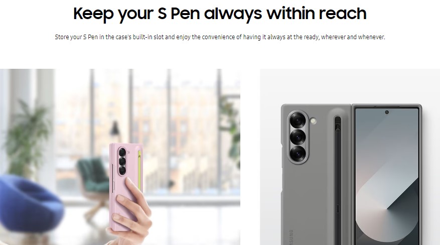 Now made even slimmer, our S Pen Case comes in three tasteful colors. Sleek and form-fitting, it's stylish, but also practical, with a built-in slot for your S Pen.