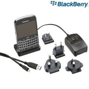 The stylish BlackBerry charging pod also comes with charging adapters so you can take your charging pod with you on holiday and charge you BlackBerry Bold 9900 wherever you are. The charging pod includes various international adapters to charge your BlackBerry handset around the world.