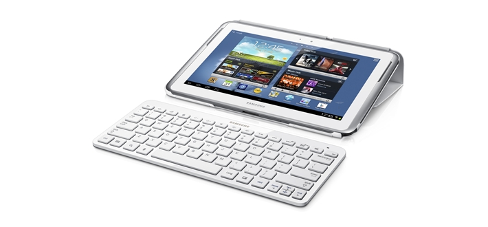 Tablet hotkeys that activate key features of Galaxy tablets or smartphones including internet, email and music/video controls as well as full QWERTY Keyboard.