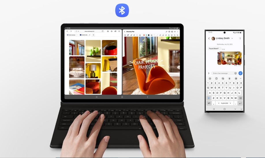 With Wireless Keyboard Sharing, you can easily connect to your other Galaxy devices and smoothly type or navigate on them. Switch between devices with ease and take control of your phone as you would on your tablet.
