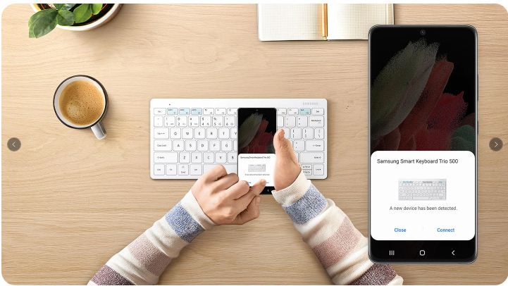 Connect it up with three different devices at once. Enjoy wide compatibility and easy pairing, as a click is all you need to switch between smartphones, tablets, and other devices paired with the Samsung Smart Keyboard Trio 500.