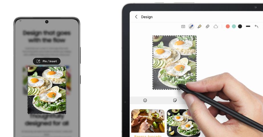 Thanks to Bluetooth connectivity inside S Pen Pro, Smart Select‡ now brings your clippings along to another device. You can select and collect interesting things and save them, then bring them up again on another screen, making sharing super simple.